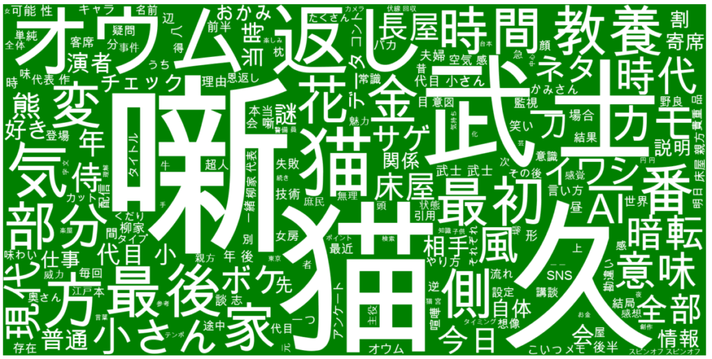 お客様の質問も交えながら、三遊亭花金・ナツノカモが語り納めます。